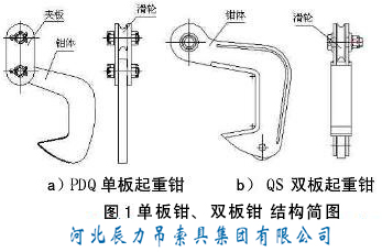 PDQ型單板起重鉗與QS型雙板起重鉗產品性能特點和結構簡圖